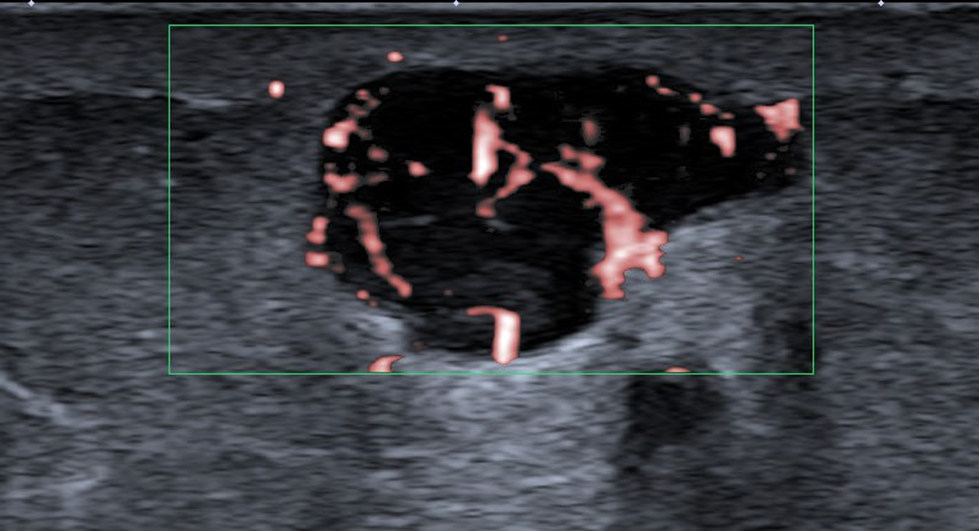 Métastase sous-cutanée de mélanome, vascularisée, dépistée en échographie